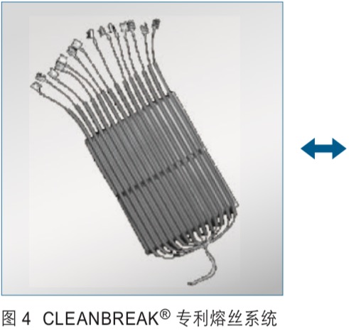 CLEANBREAK® 内熔丝熔断系统。每一个电容器元件均串联一根 CLEANBREAK® 限流熔丝作为保护。这个专利的熔丝保护系统具有以 下特点: