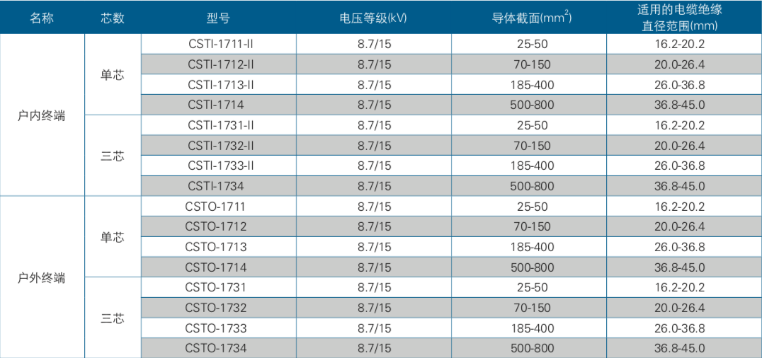 8.7/15(17.5)kV冷缩户外(内)终端